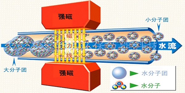 永磁高級催化氧化技術(shù),主要采用永磁磁場理論,對污水中水分子、有機(jī)物分子、離子氛的團(tuán)簇結(jié)構(gòu)進(jìn)行磁化作用,打破原先污水中各個微觀形態(tài)體的團(tuán)簇結(jié)構(gòu),打破了水分子與有機(jī)物分子及離子的水合、締合效應(yīng),改變了污水的物理、化學(xué)、分子力學(xué)等性能,表現(xiàn)為: